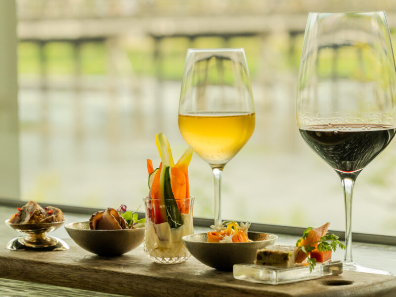 Riverside Café Muniでは15:00~19:00(L.O.18:30)にご宿泊のお客様へウェルカムドリンクをサービスしています。窓やテラスからご覧頂ける唯一無二の景色を眺めながらごゆっくりとお寛ぎください。