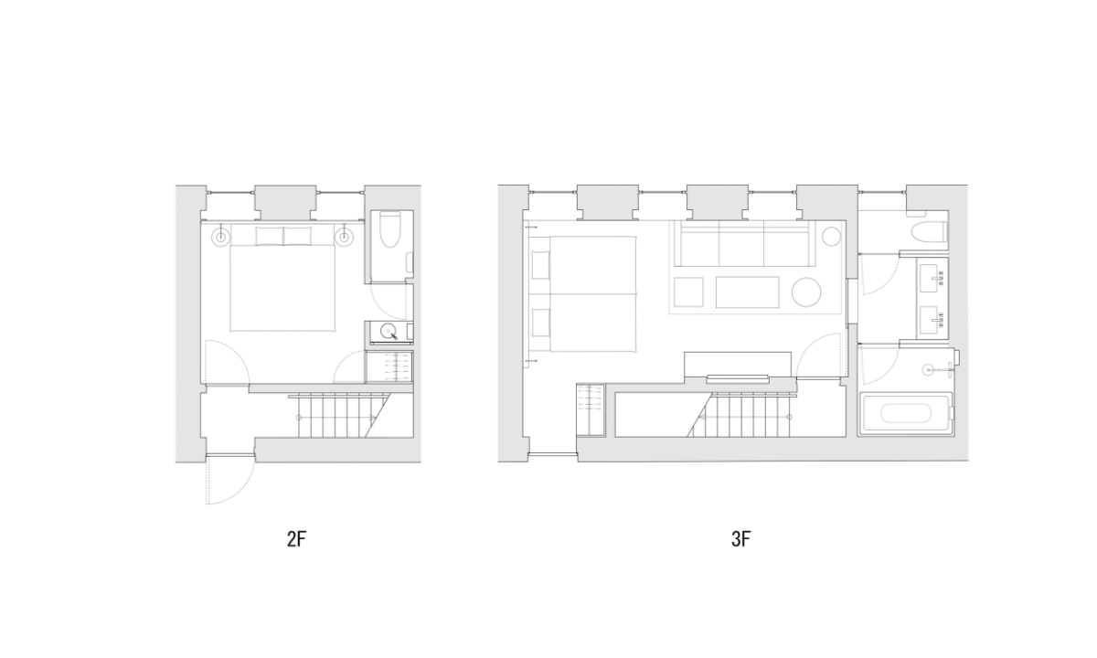 くつろぎのリビング&ベッドルームと、階層の分かれたもう一つのベッドルームがあり、プライベートを確保しながら、リビングではかけがえのない時間を共有できます。